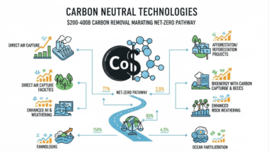 Carbon Neutral TechnologiesCarbon Neutral Technologies: $200-400B Carbon Removal Market Creating Net-Zero Pathway January 8, 20265 views19 minute read CCS + DAC + Nature-Based Solutions Generating 15-35% Returns While Removing 10 Gt CO₂/Year by 2050 ACTIVITY 1:… 0 Shares 0 0 0 0 0
