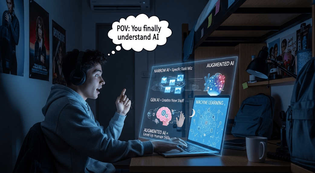 This guide is different. No cap. We’re gonna break down the THREE main types of AI that you actually need to know about. After this, you’ll be the one explaining AI at the dinner table while your parents look confused.